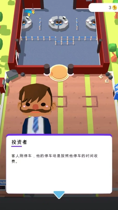 瞧!客人刚把车停下。咱们这儿的停车场是按停车时长计费的,这可是你收入的一部分呢。车位数量越多,就越容易吸引更多顾客,所以一定要抽空及时对停车场进行升级扩建。