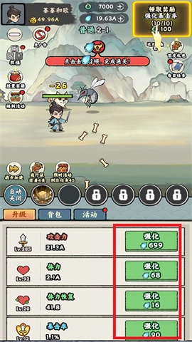 1、升级方面:角色系统作为游戏的核心玩法,玩家能够对角色的攻击力、体力、暴击率等属性进行提升。