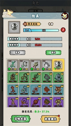 2、装备:游戏内设有武器、防具、法宝等共计六种装备,玩家解锁后即可穿戴,以此提升角色的基础战力。
