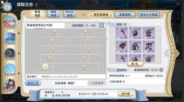 目前游戏里存在三个海域,它们会依据主角等级的提升而逐步开启。每个海域中的海怪,在被击败后会掉落相应品质的装备。最先开启的是库伦肯海域,在该海域点击不同类型的小怪,就能消耗体力或者挑战次数展开讨伐。讨伐成功后,玩家可获取与装备有关的资源奖励。具体而言,该海域海怪可掉落的材料如下: