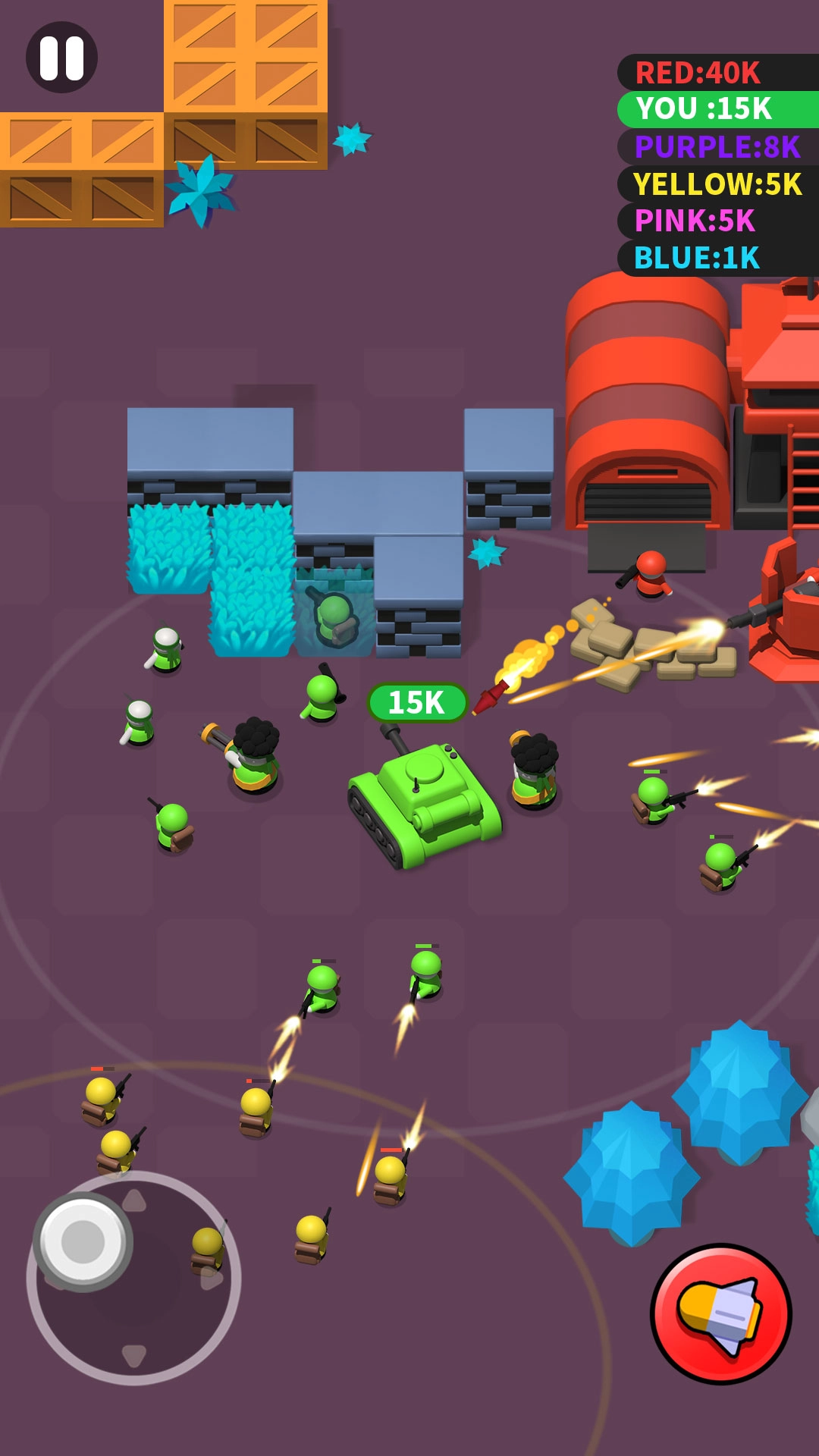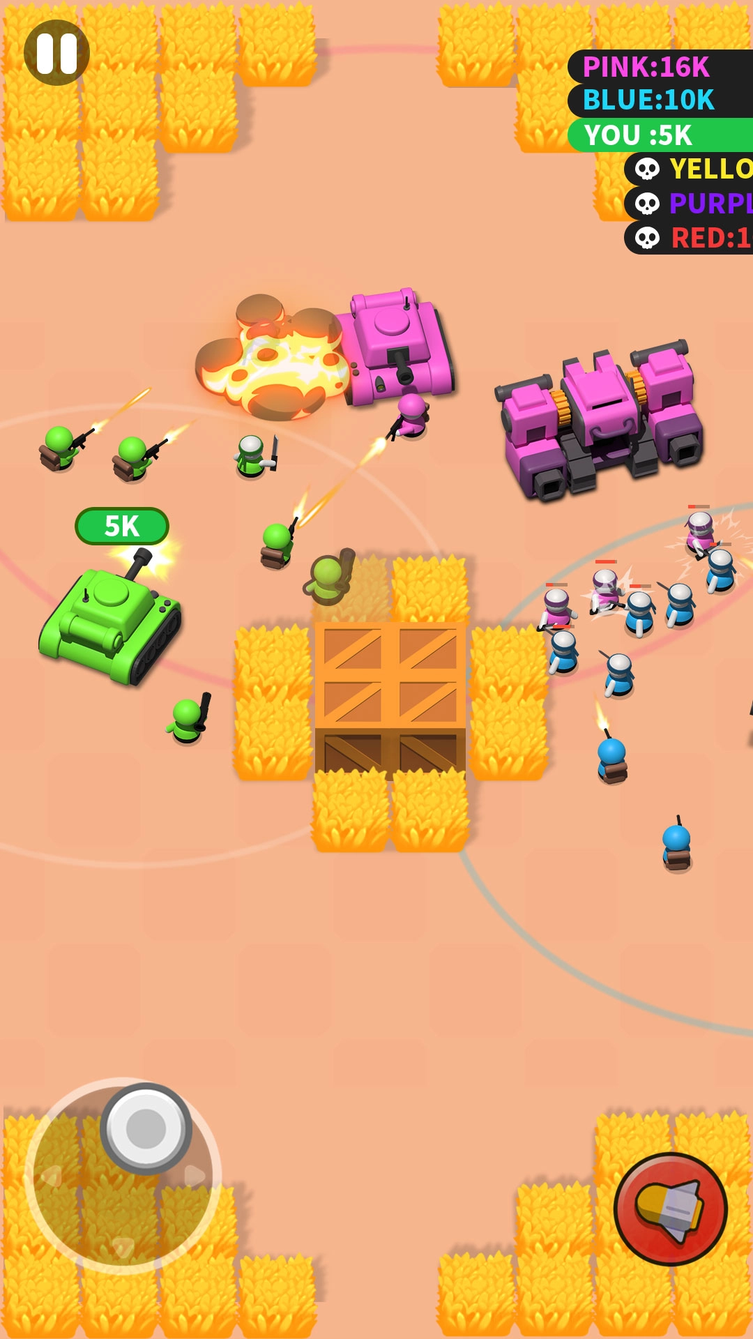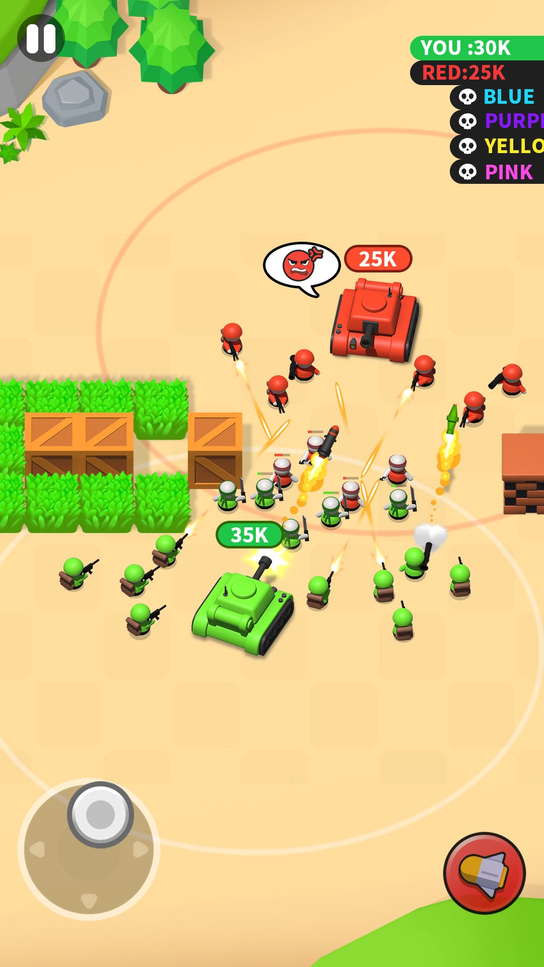 4、迅速躲开对手发射的炮弹,借助草丛与墙壁来获取胜利。