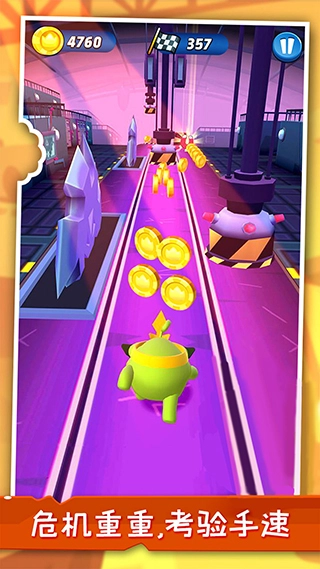 完成各类任务:跑出规定距离、收集字母、施展惊人特技,或者在无尽模式里尽量跑出较远的距离来获取奖励。