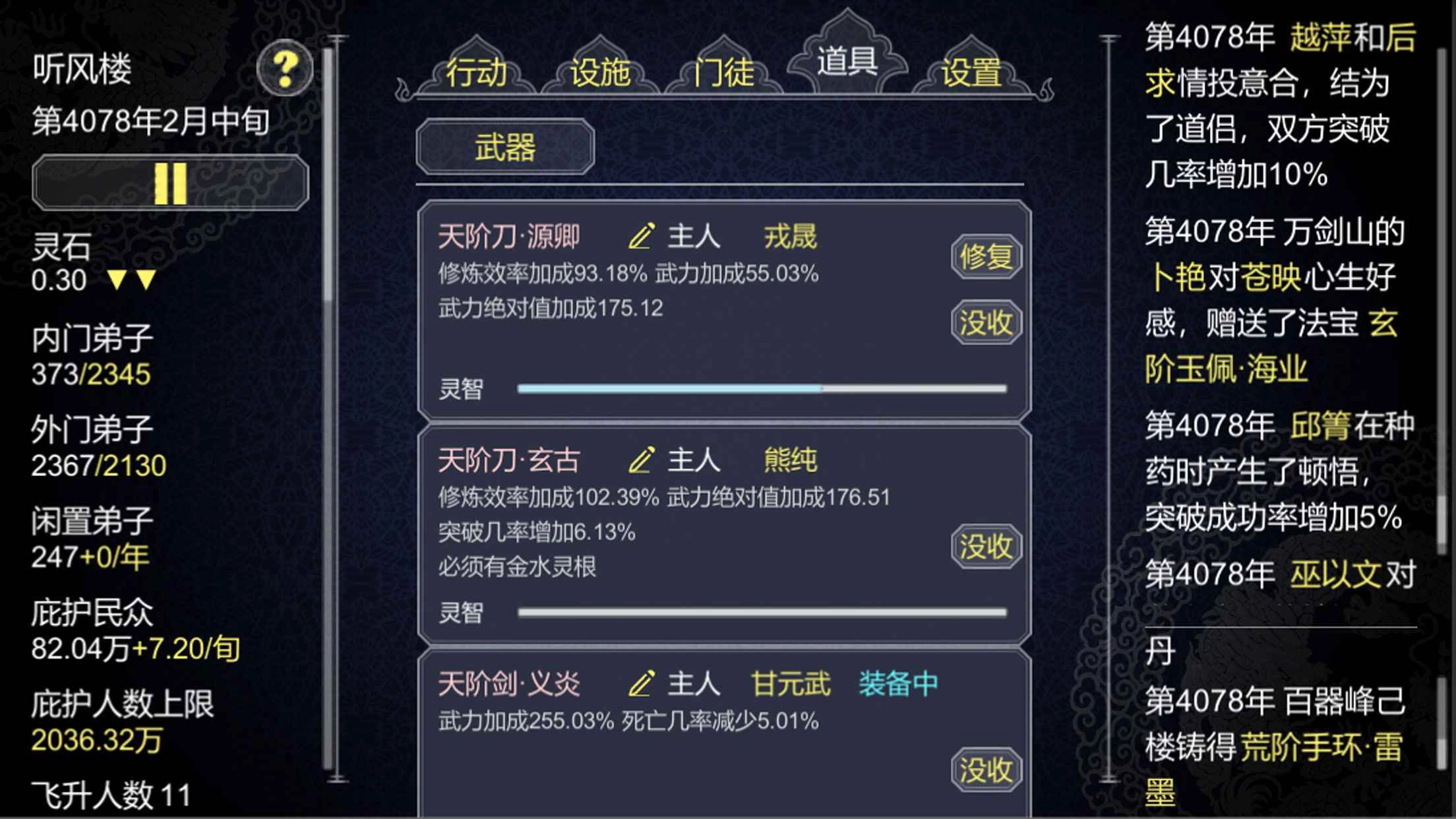 2、身为掌门,每日日常事务颇为繁杂,因此需要更多弟子协助分担。各类资源必须迅速收集,如此方能为加入门派的玩家提供各类修炼法宝与丹药。