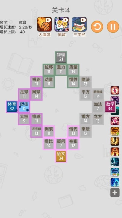 3、游戏玩家需持续增加小球数量,如此方能助力自身占领对手的学科,完成挑战。
