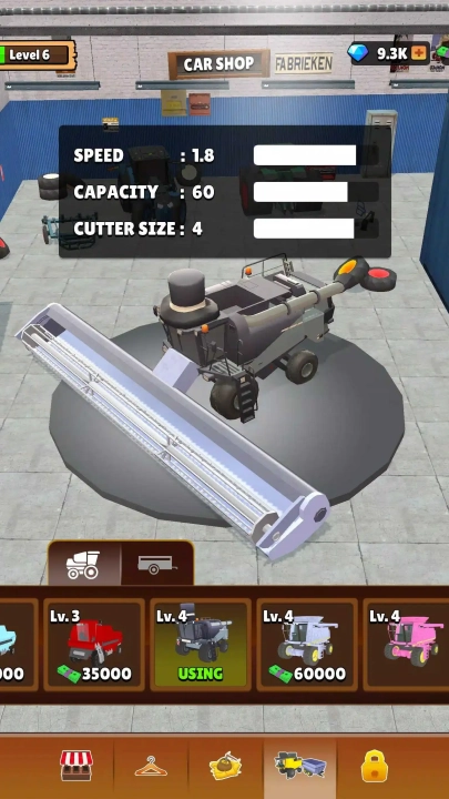 1、玩家可以对自己的收割机进行升级,从而加快收割速度,更迅速地赚取金钱。
