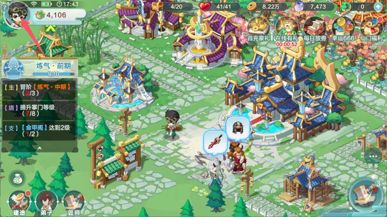 1. 当进入游戏之后,点击游戏界面左上角的头像。