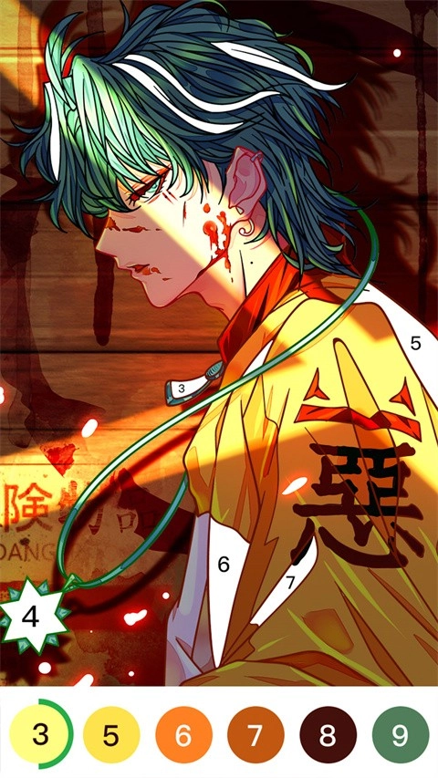 2、进入绘制界面后,留意左下方的数字色块,点击与插图对应的数字,就能开始填色。