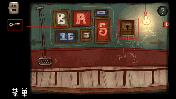 27、回到楼上走廊,依据走廊墙壁上字母和数字之间的线条连接情况可知:A = 5、B = 3、C = 16 ,由此可得E = A + C = 21。机器人给的纸条上写着密码的排列方式是AEB,也就是5213。
