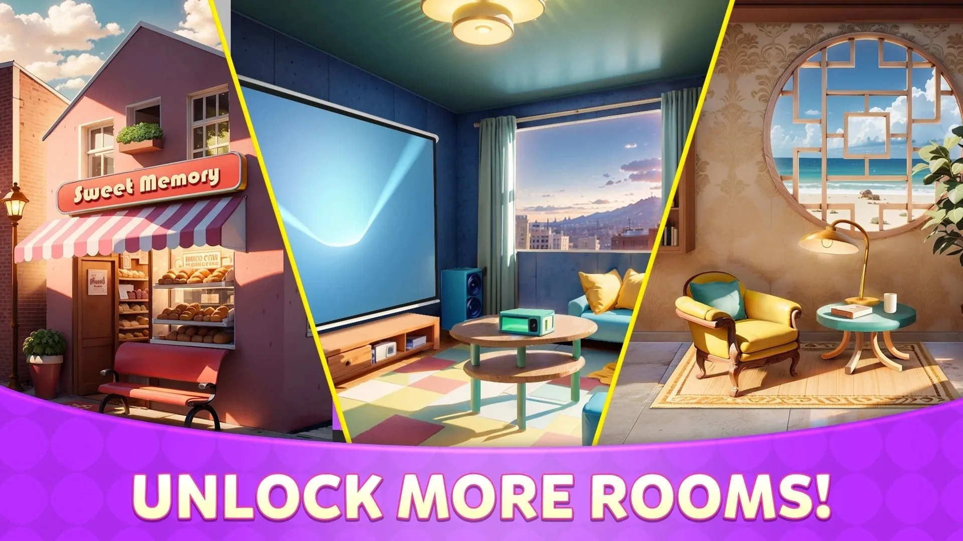 2. 当完成装饰任务,就能获取丰厚奖励,借此解锁更多风格各异的房间与章节!