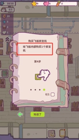 4、购置抓宝机放置于飞船内部,以此为助力,推动后续发展,向着伟大船长的目标迈进。