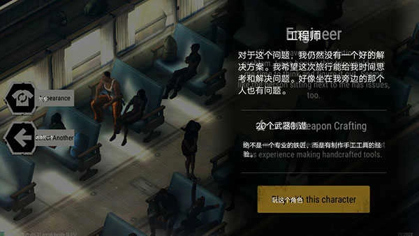 玩家可从11种技能中进行选择:防御、生存、采集、近战、制作武器、建设、屠宰、制作服装、弓术、农事。需从中选取至少3个,最多9个技能来组成细节细分化的技能组合。