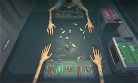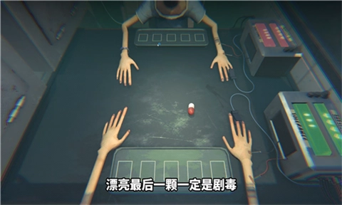 这是一款关于药丸轮盘赌的游戏,共有两名测试者参与其中。他们持续吃药,到最后仅有一人得以幸存。