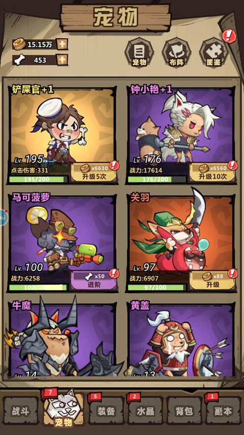3、随后进入宠物界面,对已获取的神将进行升级。