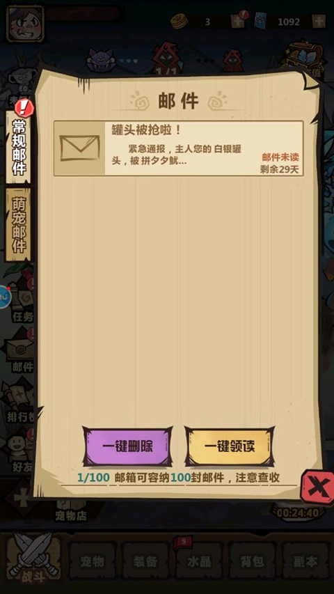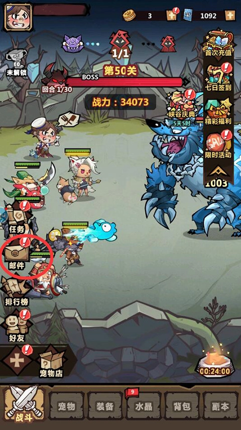 4、点击“兑换”后,我们返回游戏主界面,接着点击一下邮件图标。