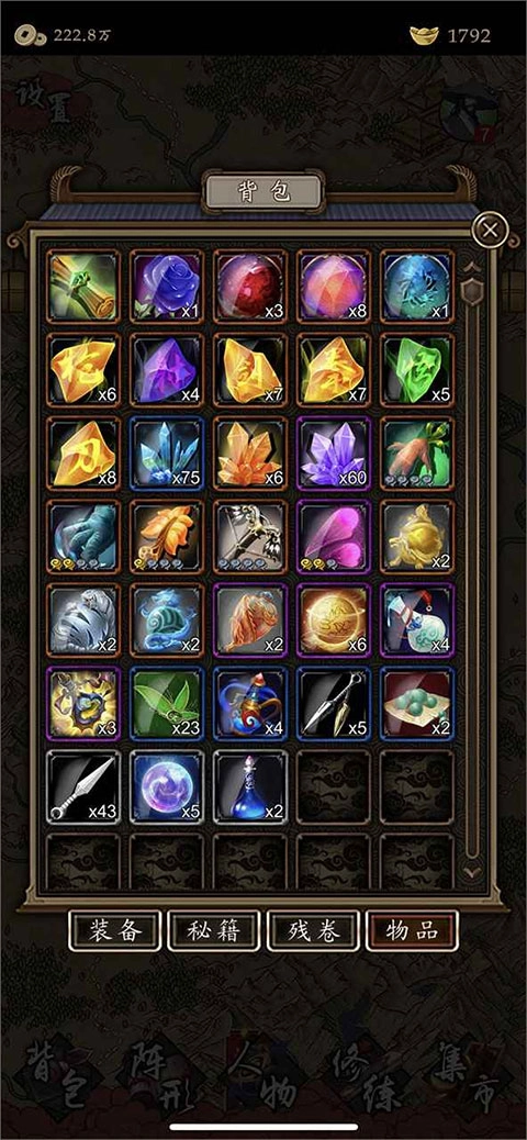 8、精心挑选并整理超200种武学招式,涵盖拳、剑、刀、枪、轻功、儒学以及内功心法等,可自由搭配组合。无论是镇派绝学、江湖武学,还是绝世神功,都在等待有缘人。而且,所有武功均可通过挂机修炼,摒弃繁琐操作,回归游戏本真。