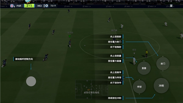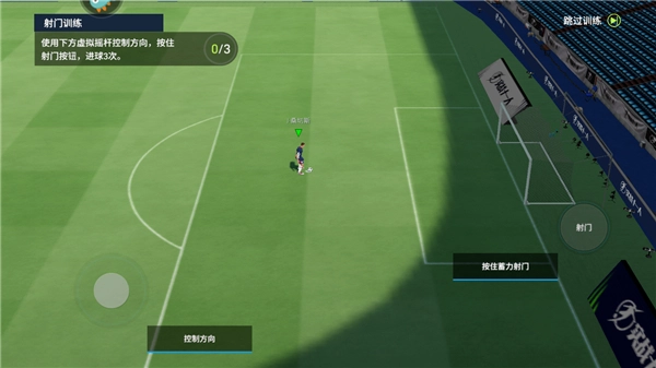 3、操作时,按下虚拟摇杆来控制方向,同时按住右边的射门按钮,即可实现进球。