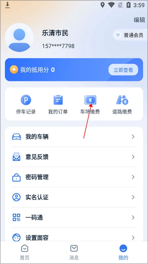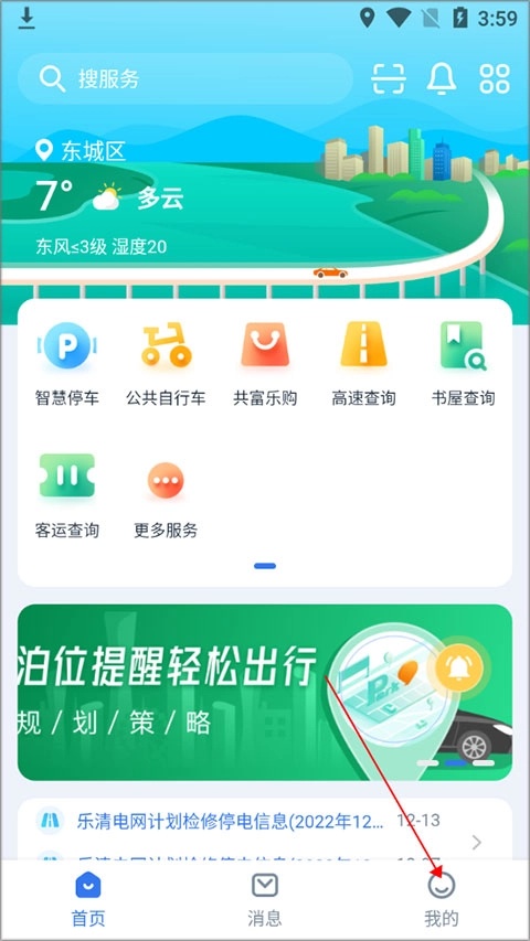 1. 先安装“乐清行”,安装完成后,打开软件进入首页,点击“我的”选项。