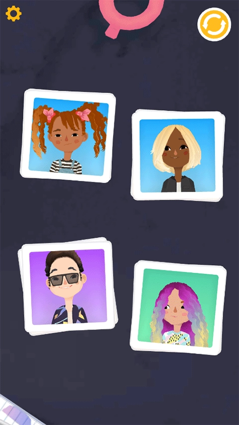 3、这里有5个全新角色,搭配11种头发颜色任你挑选组合,快来尽情打造时尚发型吧!