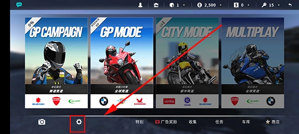 1. 初次进入游戏,为新玩家提供了单机剧情和联机全球竞速这两种体验模式,默认操作模式为点触式,可在下图所示的设置中手动切换。