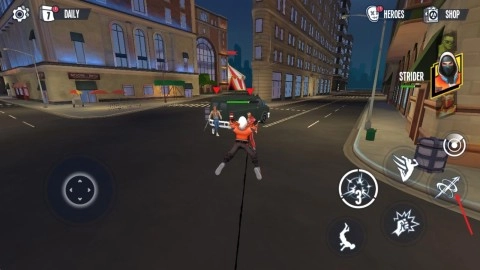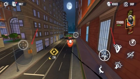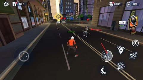 4. 该游戏运用横版操作模式,左侧设有摇杆用于控制角色移动,右侧则是攻击、发射蛛丝以及跳跃等功能按钮,操作直观且简单。