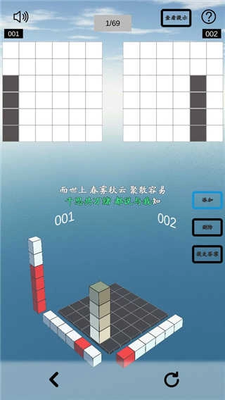 4、由于从下至上四层是相同的,因此如图所示,一次性选中从下至上四层的方块,接着点击添加。此时,你会发现提交答案选项已经亮起,这意味着答案正确,点击该选项即可。