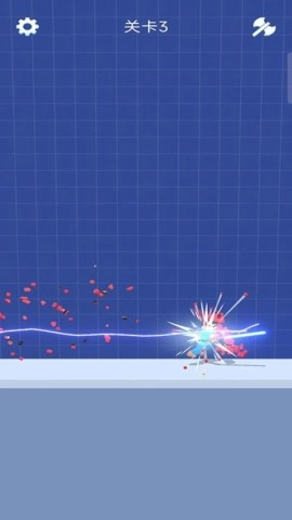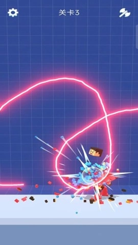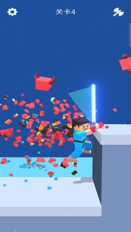 2、运用蓝剑击碎红方块敌人,凭借碎片的掩护攀登平台,开启更高等级的关卡,突出重围。