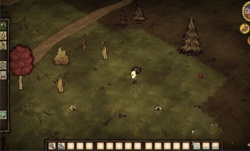 1. 前期,草、树枝、木头收集到一组后,就顺着大路去探路。途中若碰到燧石和石头,顺手捡起来,同时,看到浆果或者萝卜,也要采集。