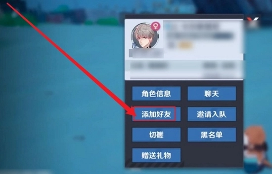 2. 如图所示,接下来在角色信息面板点击【添加好友】