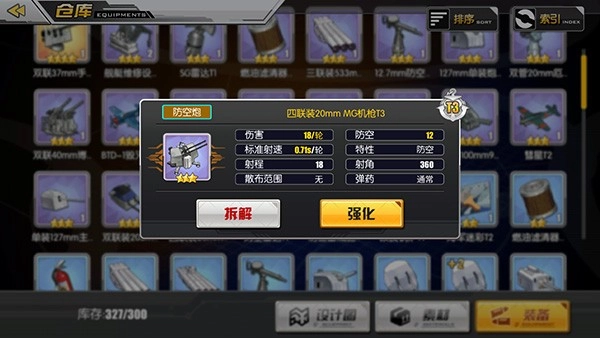 舰船装备是育成的关键要点之一,当下装备主要划分为舰炮、鱼雷、防空炮、舰载机以及设备这五类。