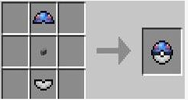 5、在《我的世界》中,右键点击铁台获取超级球的盖子,手持精灵球底盘,重复第1步进行合成精灵球,具体操作如以下图示。
