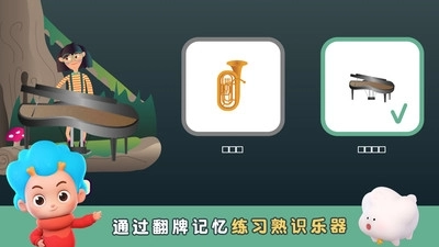 乐器识别:听音辨琴,通过翻牌记忆练习熟识乐器。