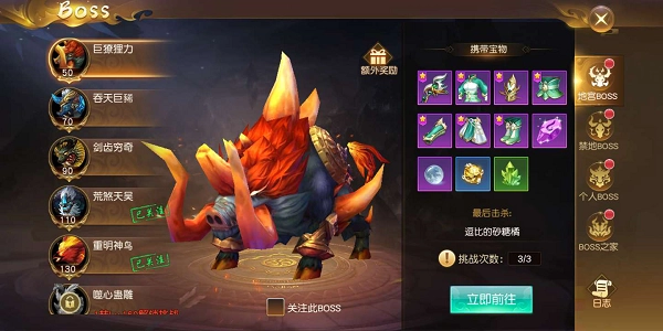 然后选择:50级Boss巨獠狸力