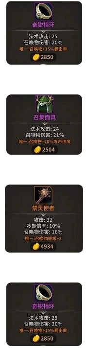 奋锐指环、召集面具、禁灵使者、奋锐指环
