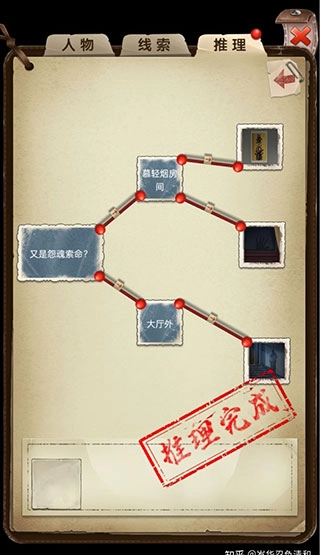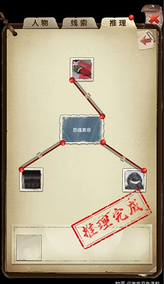 选择:第三条白绫、悬梁白绫2、悬梁白绫、房梁上的黑手印、第二只手印和第三只手印。