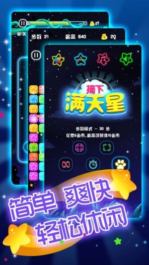 玩法经典耐玩:延续经典消除星星核心玩法,规则易懂无门槛,兼顾休闲放松属性与闯关趣味性。