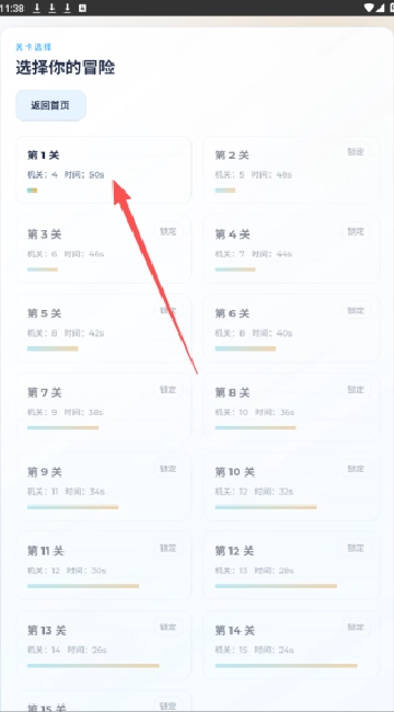 进入游戏后能看到众多关卡,你可以自由挑选不同关卡开启挑战。