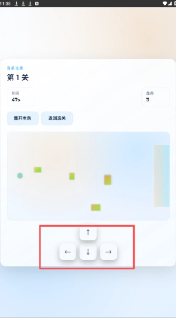 主要玩法是借助下方的上下左右按钮,操控我们的圆点移动。