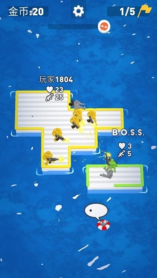海上漂流战是一款以海洋为背景的io大作战类游戏,玩家需要通过海上漂流来解救海里的人员和木筏,以此扩大领土、壮大团队并增强自身实力。游戏采用关卡制设计,不同关卡的难度各有不同,玩家能够依据自身水平挑选合适的挑战关卡。在游戏过程中,玩家可以选择不同颜色来区分自己与其他玩家,同时通过收集木筏来增加船员的容纳数量,进而提升自身的防御能力和攻击能力。
