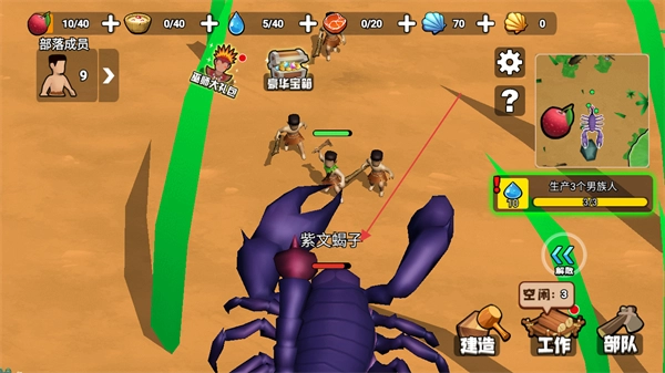 部落成员和紫文蝎子展开战斗,不断发起攻击,直到把这只怪物打败,从而得到了奖励。