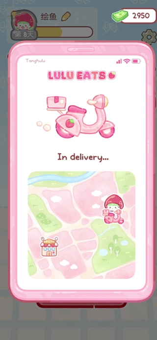 进入游戏后,点击左上角那个粉红色的电瓶车按钮,就能进入外卖系统了。
