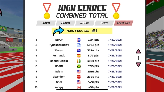 可以看到包含100米、200米、400米、110米跨栏、400米跨栏等不同项目,玩家能够自主选择参与体验,下面就以【100米】项目来举例说明。