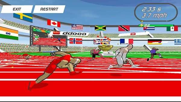 点击屏幕的速度越快,运动员奔跑的速度也就越快,