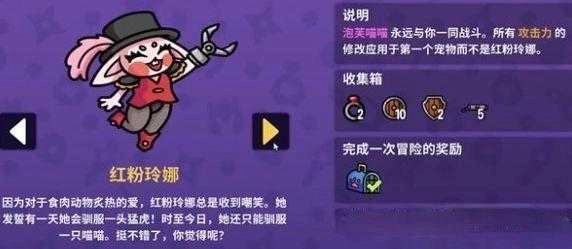 能力:可以召唤一只泡芙喵喵协助战斗,不过宠物攻击力的修改效果仅适用于第一个宠物,而非红粉玲娜。