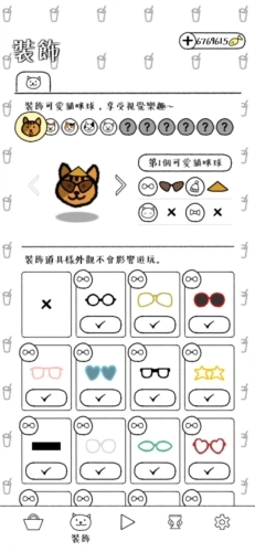进入【装饰】功能界面,挑选心仪的帽子、眼镜、蝴蝶结之类的配饰,利用游戏过程中获取的积分或道具来解锁更多装饰类物品。
