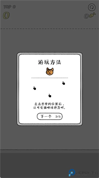 点击想要的位置后,让可爱猫咪球掉落吧。