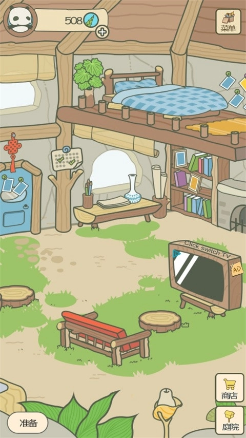首先启动旅行熊猫这款游戏,在房子外面我们能够采集竹子。