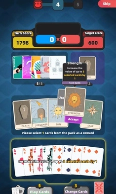合理运用小丑牌不仅能提升你的牌技,助你领悟打牌技巧,还能锻炼脑力,让你尽享游戏乐趣。游戏过程轻松惬意,即便在手机上也能体验到现实打牌的快感,随时随地都能玩上几局。