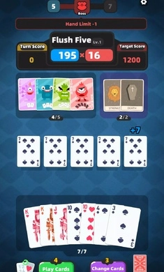 6、小丑牌能够替代任何面值与花色的牌,也能代替其他任意一张牌,以此增强牌组的灵活度,助力玩家组合出更优的牌型。