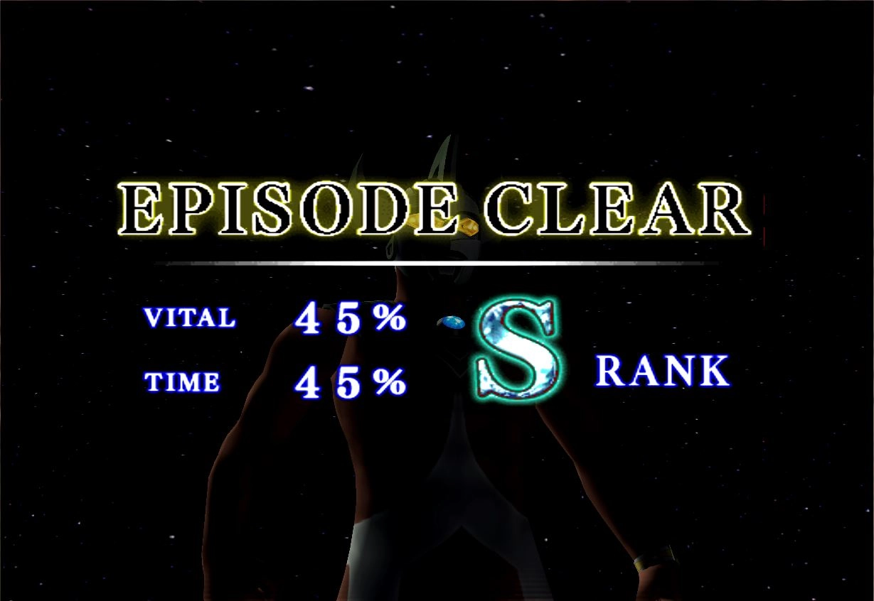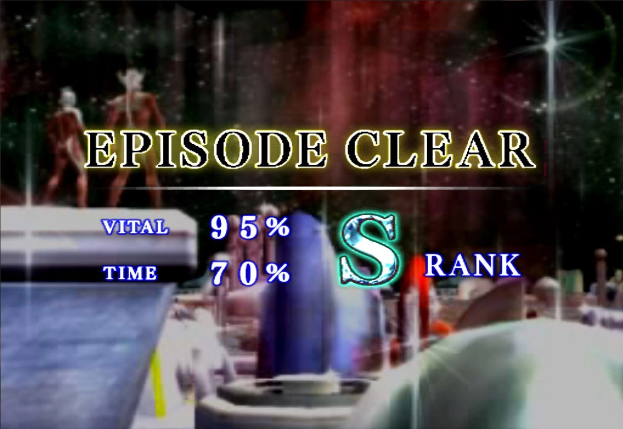 一开始玩的是打飞船的游戏,等把飞船打到只剩50%的血量时,场景就切换成赛文奥特曼和巴尔坦星人的决斗了。对战的时候尽量用“前+O”这个连招,差不多2分30秒左右就能赢下比赛。不过有点搞不懂的是,有时候明明已经达成了S条件的要求,最终评定却还是B级。