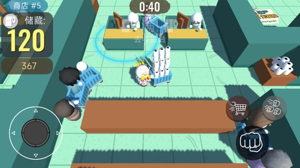 1. 玩家借助操控购物车,能够实现快速移动,争抢厕纸,与此同时还要避开其他购物者的攻击。